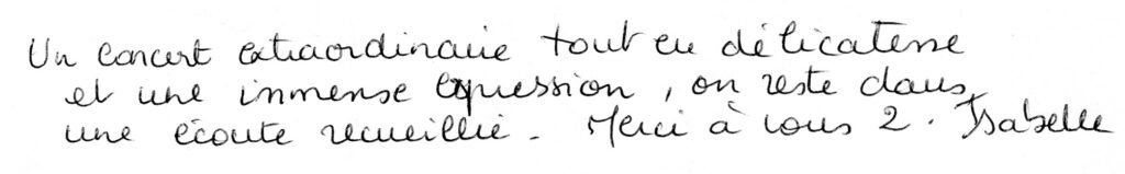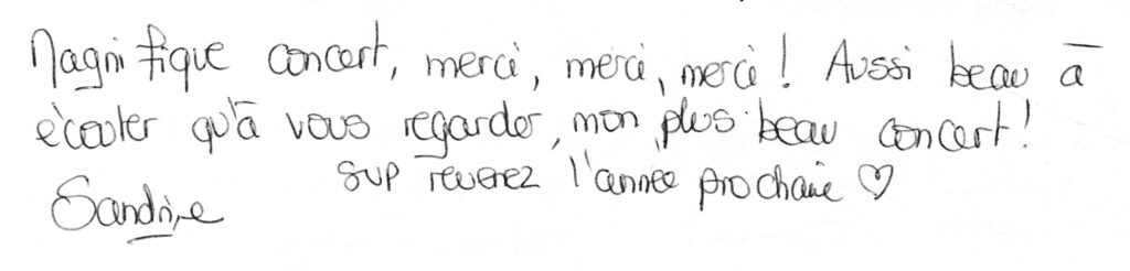 Un programme assez long, mais avec une qualité d’écoute exceptionnelle dans la salle.