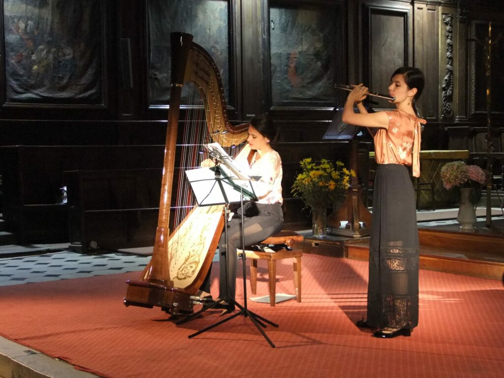 Le samedi 17 septembre et le dimanche 18 septembre 2016, Mathilde Calderini et Mélanie Genin nous ont fait vivre un weekend du patrimoine exceptionnel avec deux concerts de toute beauté autour de la musique française du début du XXe siècle pour harpe et flûte traversière. Une salle comble à l’hôtel des Ligneris pour un vrai concert de salon plein d’intimité, une très belle église moins bien remplie à Illiers-Combray où les artistes nous ont transportés dans un véritable voyage proustien plein de poésie; les deux concerts furent précédés par une visite commentée du lieu, à Chartres par M. le Préfet, et à Illiers-Combray par Mme Gisèle Maini.
