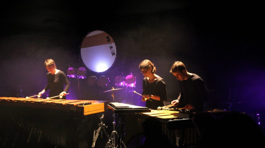 « Un trio Incidence à double sens : Finalement,  rien n’est plus sérieux que le jeu. C’est ce qu’a démontré l’excellent trio de percussionnistes Incidence, formé par trois musiciens et professeurs du département. Avec du talent à revendre, beaucoup d’humour et une étroite complicité, ils ont captivé le public, invité à participer. Une parfaite façon de rendre au verbe jouer son double sens d’art musical et d’amusement. »