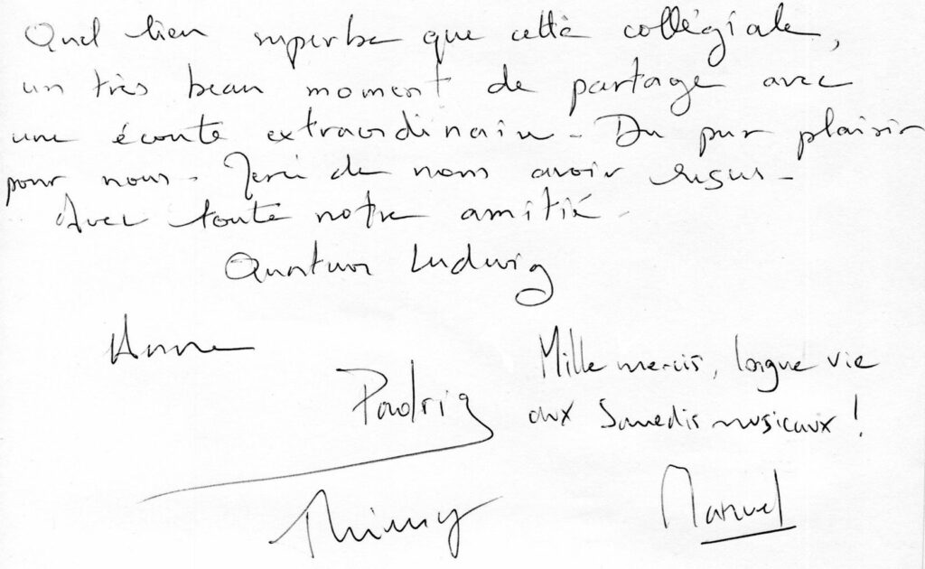 Glinka : des thèmes russes travaillés à la façon de Haydn et sa ville de Vienne. Rachmaninov à 16 ans avec son premier quatuor inachevé. Après l’entracte son deuxième mouvement, construit sur un ostinato du violoncelle, très émouvant. Pour terminer le premier quatuor de Chostakovitch, surprenant de gaieté printanière, mais aussi d’ironie.
