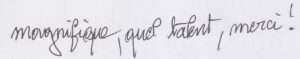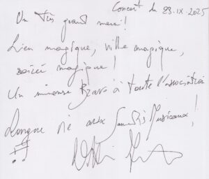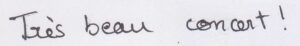 Profondément émus par la beauté de cette musique et la qualité de cette restitution, les auditeurs ont fait un triomphe à ce jeune chœur ainsi qu’à Brigitte Lesne, et ils gardent au cœur l’espoir de pouvoir les entendre à nouveau très bientôt à Chartres.